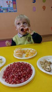 Hemos realizado un taller uniendo la cocina y el otoño en el cuál han podido probar los diversos alimentos típicos de dicha estación, como son las castañas, las granadas, las mandarinas y las nueces.